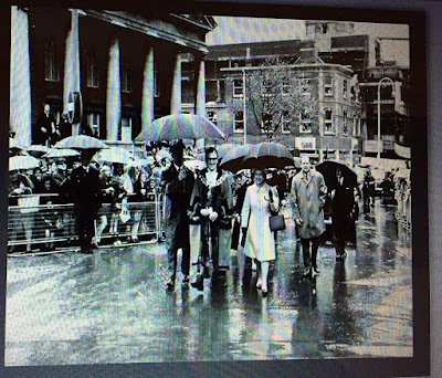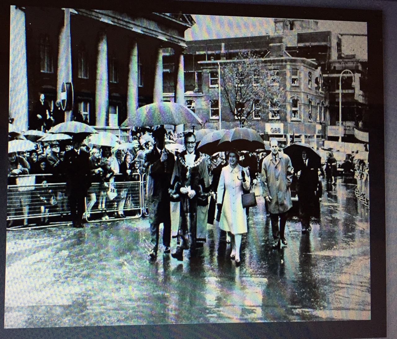 This charming photograph shows the opening in 1971, the Queen has her own umbrella, the Mayor has his umbrella held for him and the Duke of Edinburgh doesn’t have an umbrella at all.